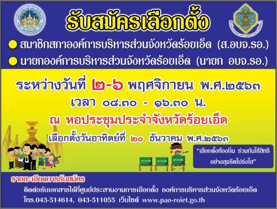 กำหนดการเลือกตั้ง นายก และสมาชิกสภา อบจ.ร้อยเอ็ด